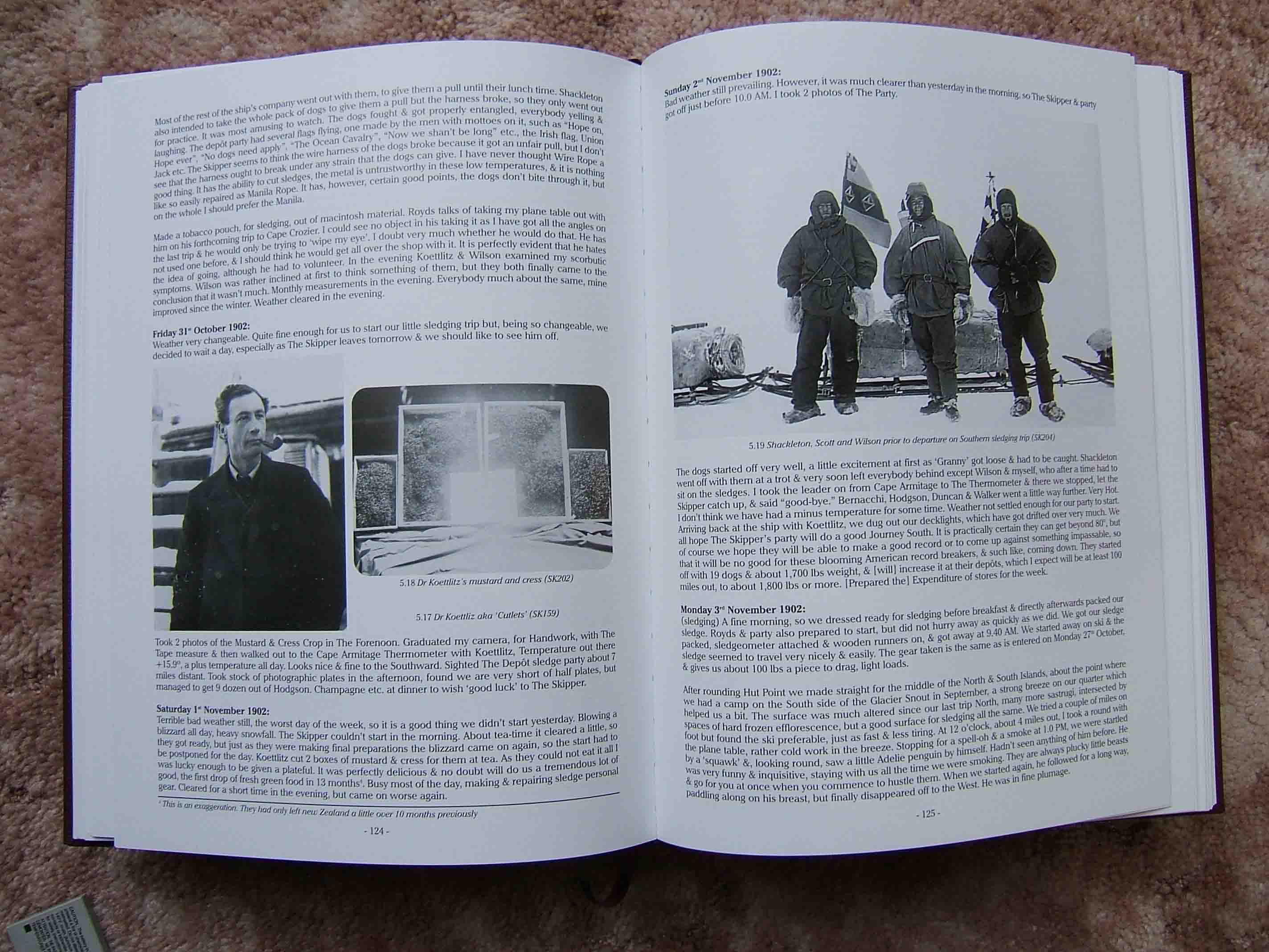 Part 5 - Sledging Near and Far (1st September to 29th November 1902) 106 - in which - the expedition's sledgers develop their skills, through numerous short reconnaissance and depot-laying outings, in preparation for the epic journeys to come later in the season - Royds' party succeeds in reaching the Cape Crozier message post with information of Discovery's whereabouts for the relief ship - Skelton, with Evans and Quartley, discovers the first Emperor penguin colony seen by humans and takes the first photographs of Emperor chicks - Scott's party start on their journey to explore as far South as possible - Armitage organises sports to celebrate the King's birthday